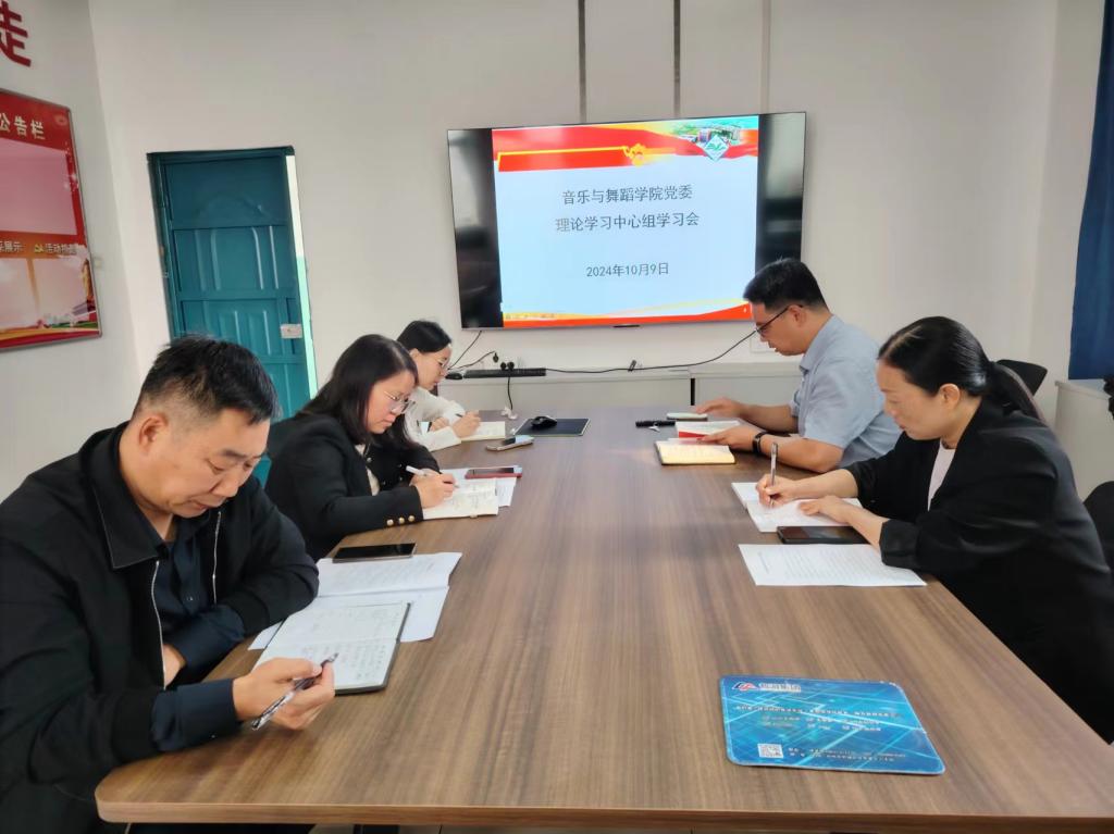 10月9日,音乐与舞蹈学院在8#500会议室召开理论学习中心组学习研讨会,学院党委理论学习中心组全体成员参加会议。会议由院党委书记魏军鹏主持。
