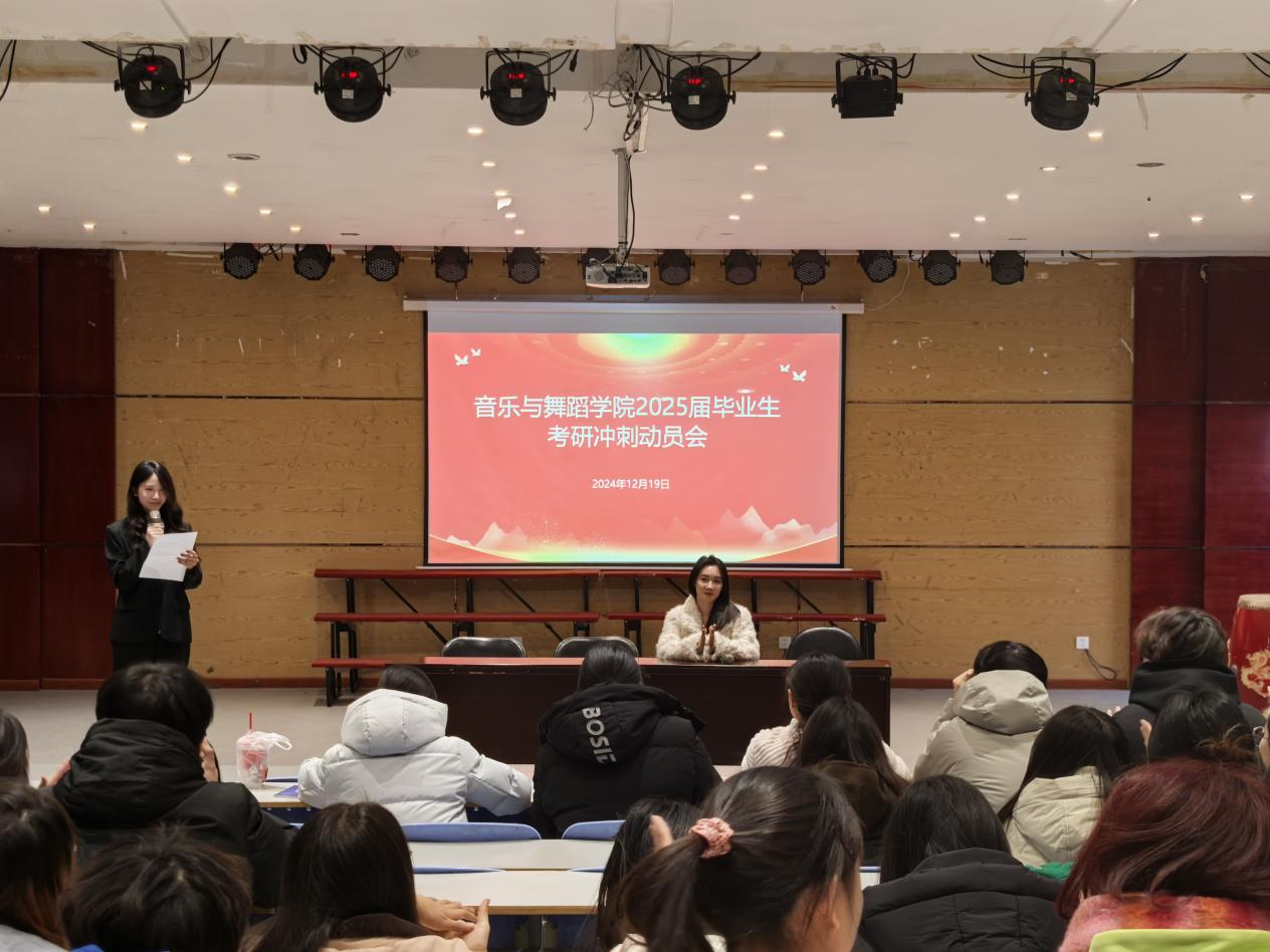 为有效缓解考研学生的备考压力,激发考研热情,增强考研斗志,坚定考研信心,12月19日,音乐与舞蹈学院在11#音乐厅召开2025届毕业生考研冲刺动员会。2022级辅导员李梦婷及全体考研学生参加会议。