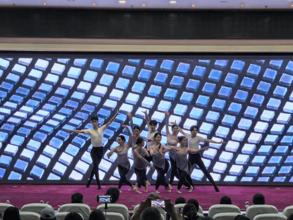汇演在温馨感人的氛围中拉开帷幕,学长学姐们通过图文、视频等形式,为即将踏上新征程的毕业生们送上鼓励和祝福。随后,舞蹈《溯・跃》活力登场,同学们以灵动的身姿、充沛的情感瞬间点燃全场气氛。在舞蹈技术技巧展示中,同学们扎实的功底和专业的技巧赢得阵阵掌声,彰显了专业学习训练的成果。男子群舞《大河之子》气势恢宏,同学们用铿锵有力的舞步演绎出刚毅与坚韧的力量,将演出推向高潮。毕业班班长献唱的《多情种》旋律悠扬,歌声中饱含着对母校和同学的不舍之情,引发全场合唱,现场氛围温馨而动人。谢幕舞蹈《我的未来式》充满活力与希望,展现出音舞学子昂扬向上、勇于追梦的精神风貌,也为这场精彩的演出画上了圆满的句号。