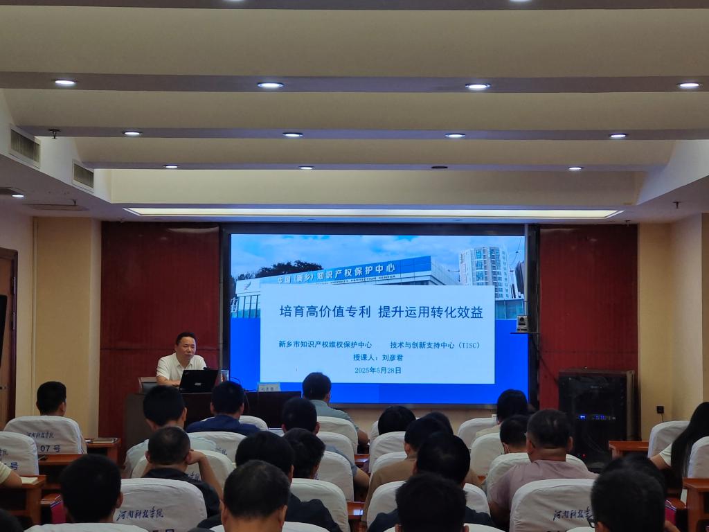 5月28日,我校特邀新乡市知识产权维权保护中心刘彦君来校开展知识产权宣传专题讲座。各二级学院科研副院长,科研秘书与教师代表参加。会议由成果转化与合作办公室相关负责人主持。