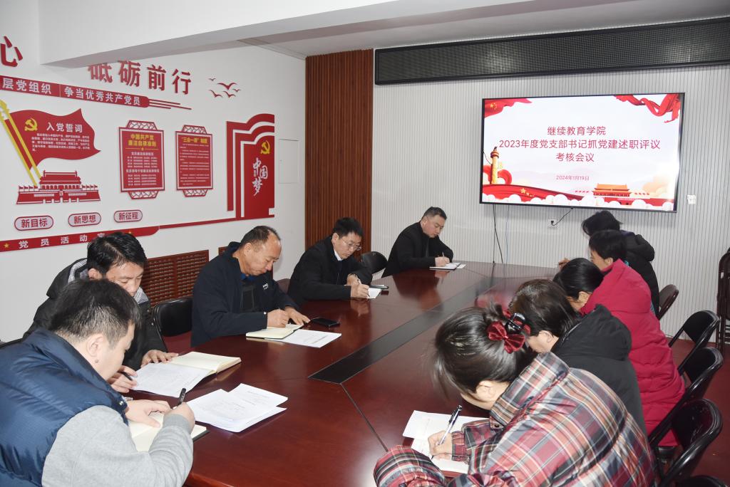 为巩固拓展主题教育成果,全面落实管党治党政治责任,1月19日下午,继续教育学院2023年度党支部书记抓党建工作述职评议会议在学院二楼会议室召开,学院党总支委员、党支部书记、全体党员参加会议。会议由学院党总支书记郭东升主持。
