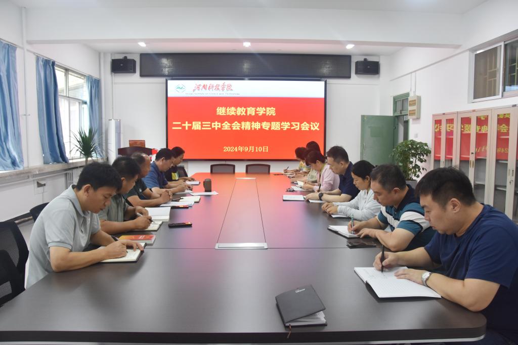 9月10日上午,继续教育学院党总支在实验楼D段202会议室召开党的二十届三中全会精神专题学习会议,学院班子成员及全体教工参加学习。会议由党总支书记郭东升主持。