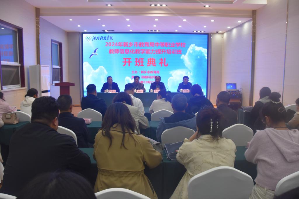 10月27日下午,由新乡市教育局主办、河南科技学院教育培训中心承办的2024年中等职业学校教师信息化教学能力提升培训班在百泉国际大酒店举行开班典礼。新乡市教育局四级调研员何剑、职业与成人教育科主任王步宇、继续教育学院党总支书记郭东升、教育培训中心副主任姚建国,以及来自全市中等职业学校的70余名参训学员参加开班典礼。开班典礼由姚建国主持。