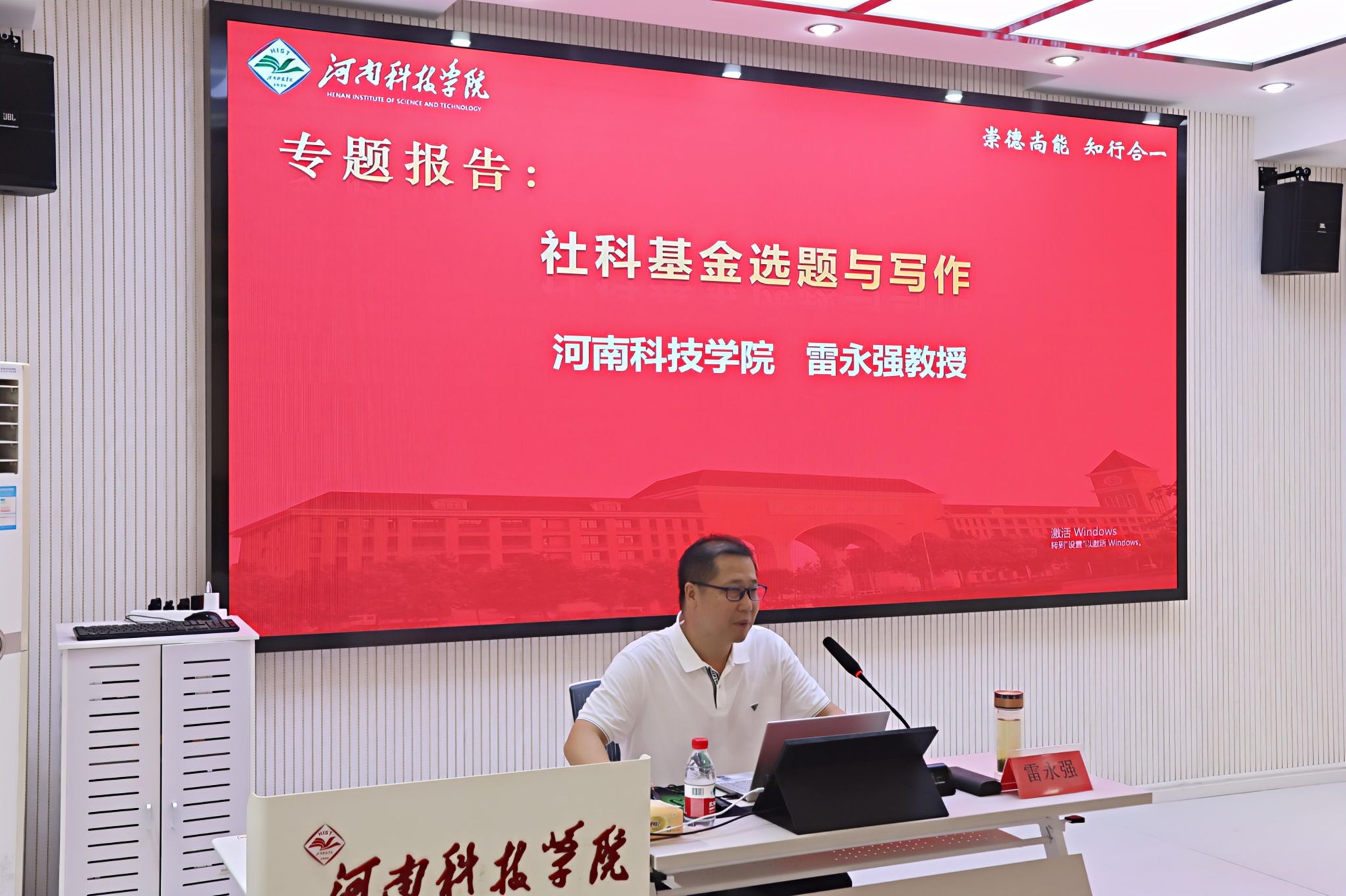 本次报告特邀学校新引进的高层次人才雷永强教授担任主讲嘉宾。他以《社科基金选题与写作》为题,结合自身丰富的学术积累与科研实践经验,就国家级科研项目申报的关键环节进行了系统讲解和深入分享。